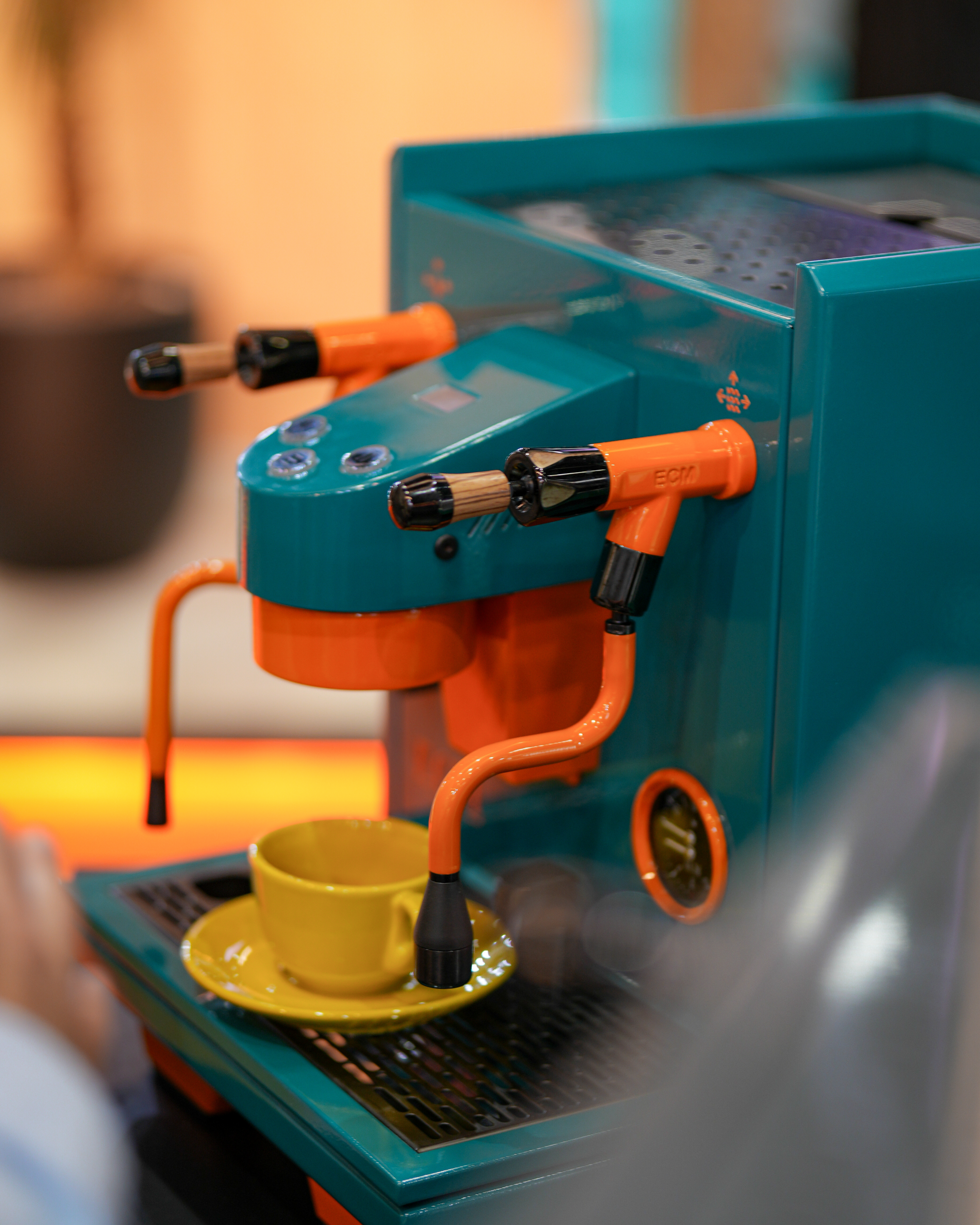 With its striking green body paired with orange accents – this unique color combination captured attention and showcased how bold design choices can transform an espresso machine into a visual centerpiece. Through carefully selected colors, finishes, and bespoke details, our partner demonstrated how customization can elevate a machine’s identity while preserving ECM’s technical DNA. This customized model reflected not only precision engineering, but also creativity and a strong sense of style – perfectly aligned with modern coffee spaces.